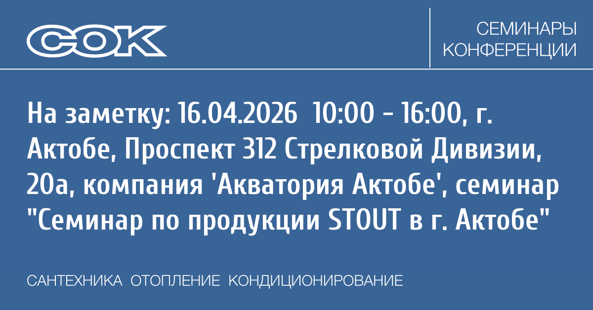 Семинар: Семинар по продукции STOUT в г. Актобе