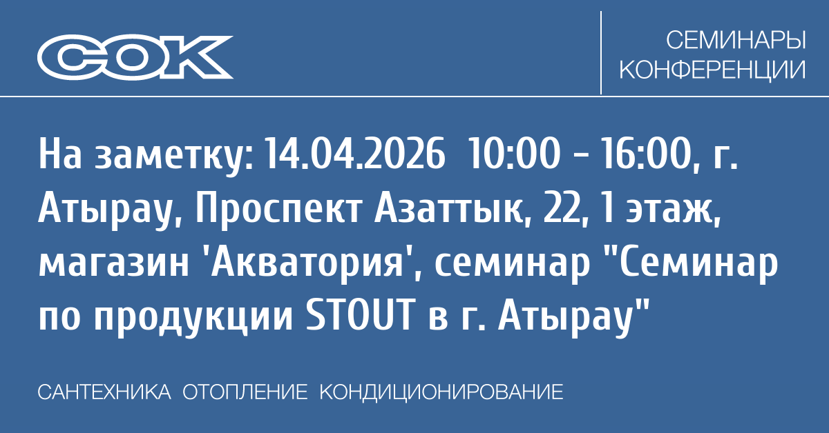 Семинар: Семинар по продукции STOUT в г. Атырау