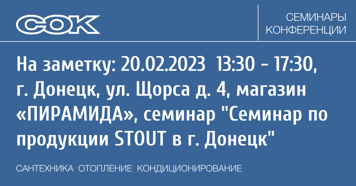 Семинар: Семинар по продукции STOUT в г. Донецк