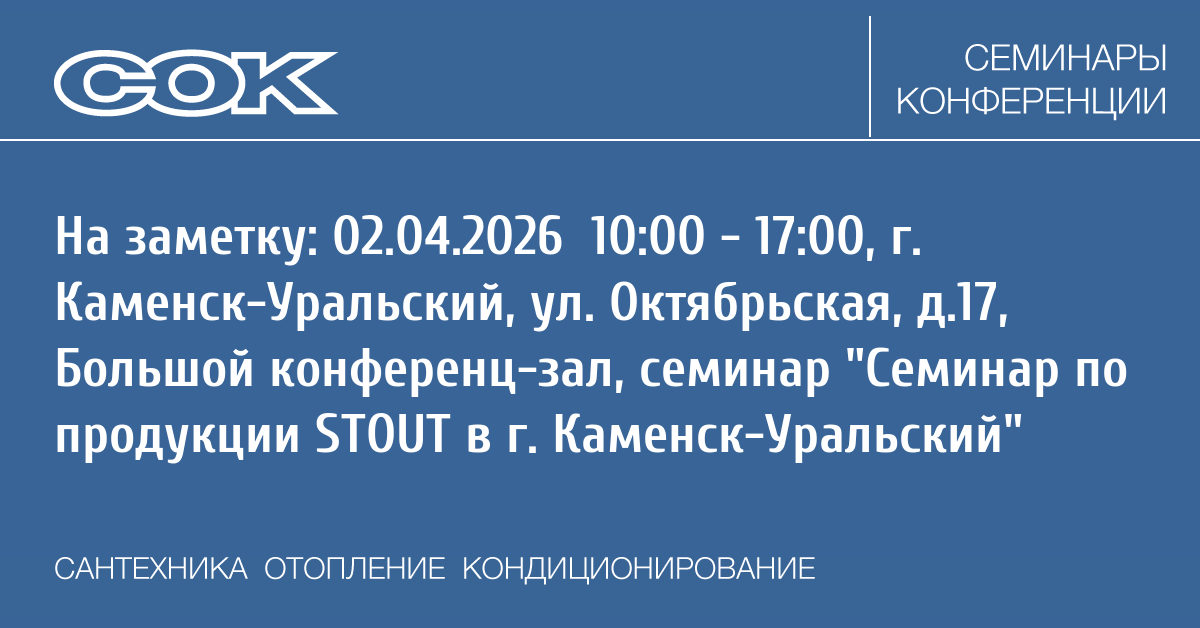Семинар: Семинар по продукции STOUT в г. Каменск-Уральский