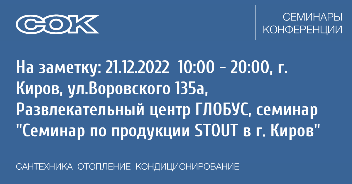 Семинар: Семинар по продукции STOUT в г. Киров