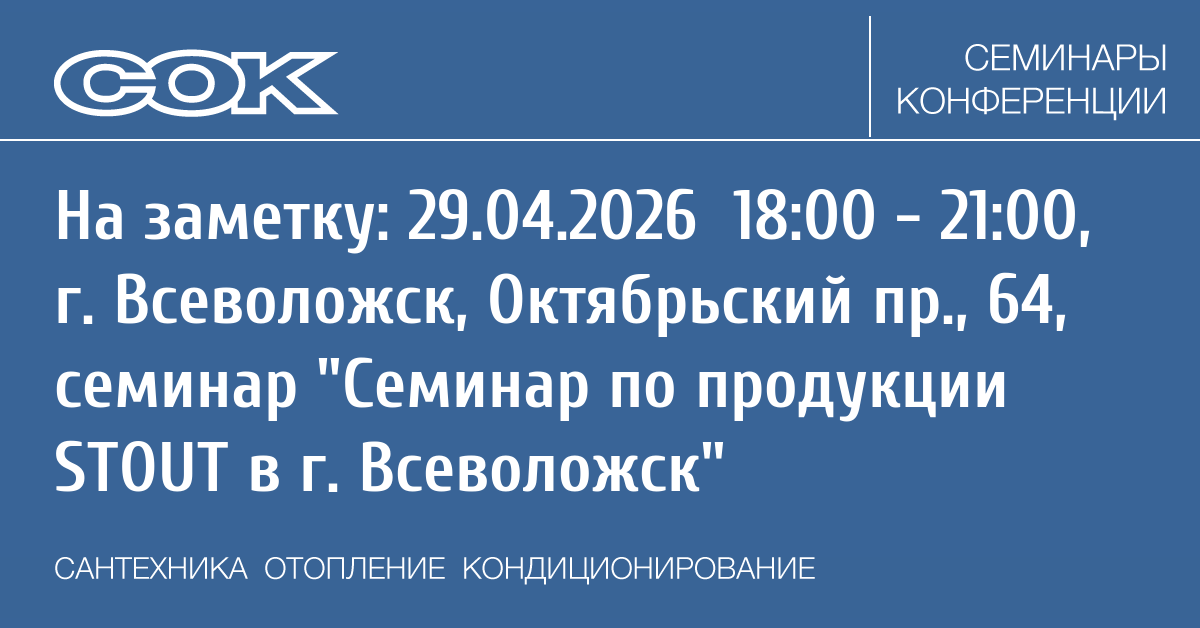 Семинар: Семинар по продукции STOUT в г. Всеволожск