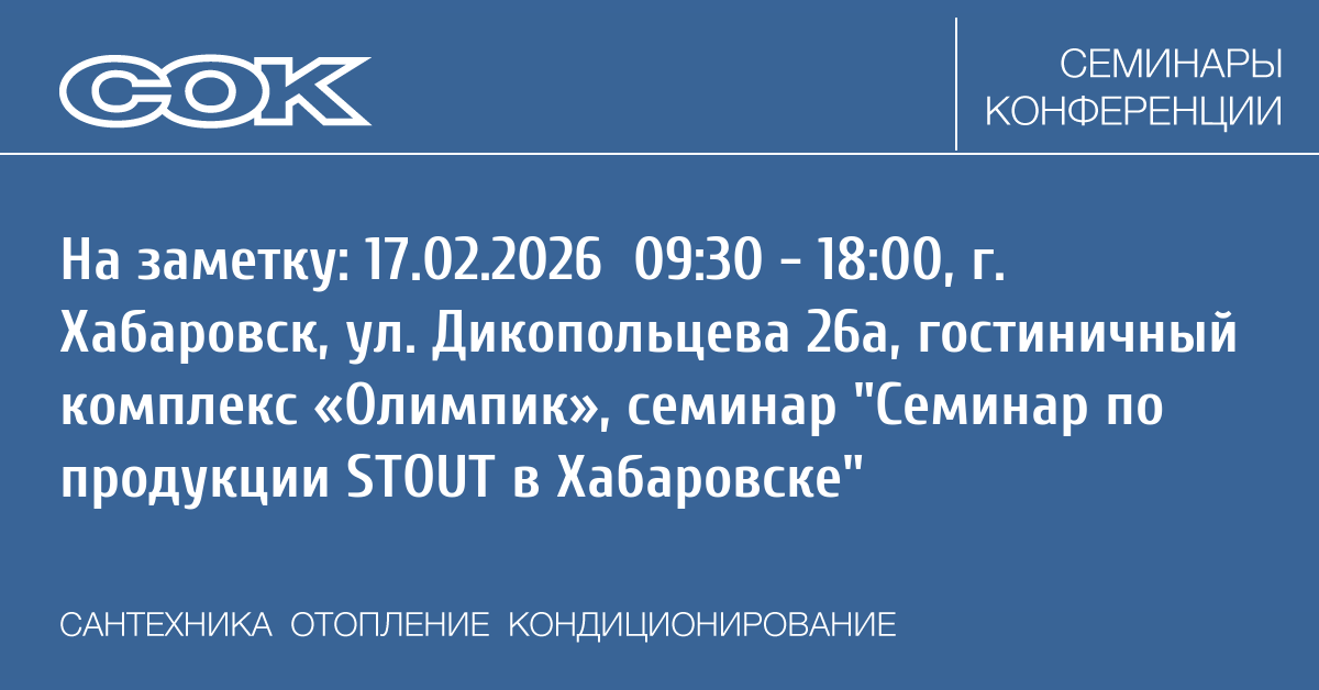 Семинар: Семинар по продукции STOUT в Хабаровске