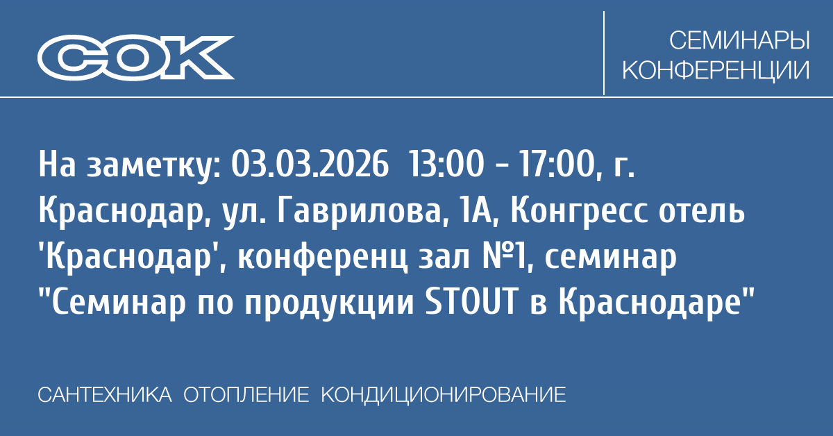 Семинар: Семинар по продукции STOUT в Краснодаре