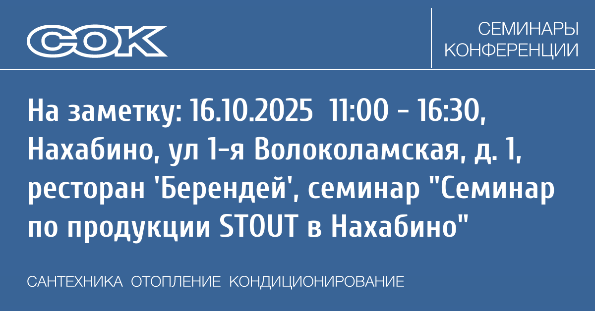 Seminar: Семинар по продукции STOUT в Нахабино