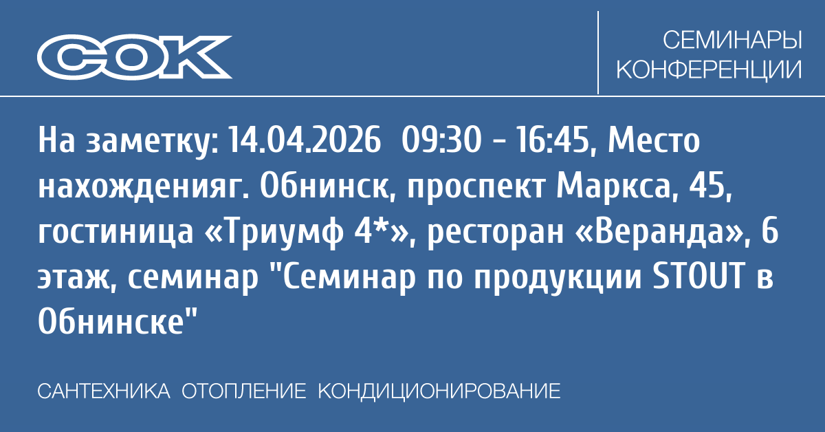 Семинар: Семинар по продукции STOUT в Обнинске