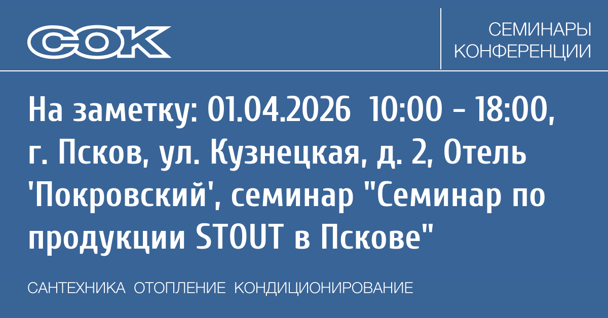 - 12.03.2026 09:00 - 16:00 Семинар Семинар по продукции STOUT в Твери