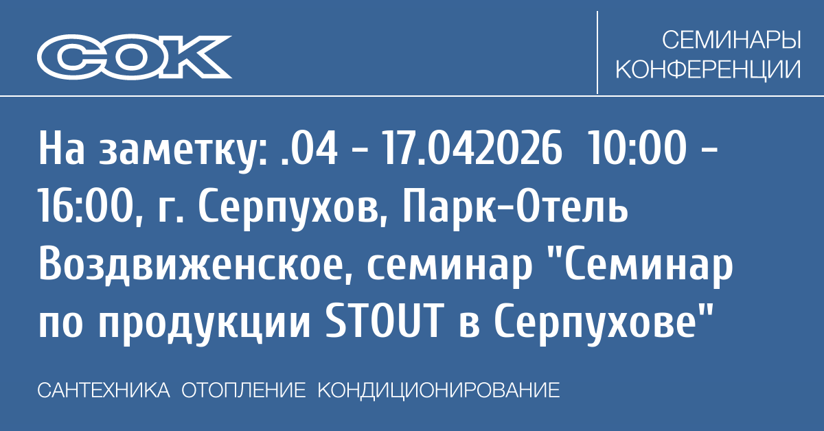 13:30–16:00 — Stout. Новинки 2026, особенности монтажа и обслуживания. Ответы на вопросы.