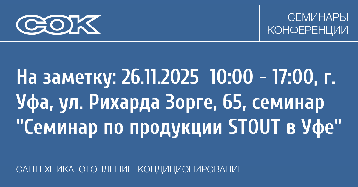 - 17.02.2026 09:30 - 18:00 Семинар Семинар по продукции STOUT в Хабаровске