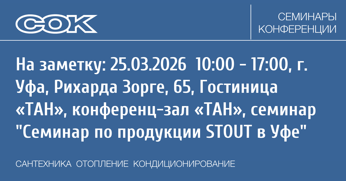 - 10:00–13:00 — Обзор Новинок бренда STOUT 2025–2026.