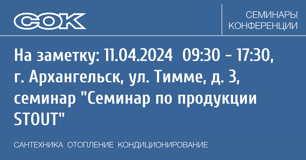 - 10:15–13:00 — STOUT Европейское оборудование для водоснабжения и отопления. Давайте знакомиться!