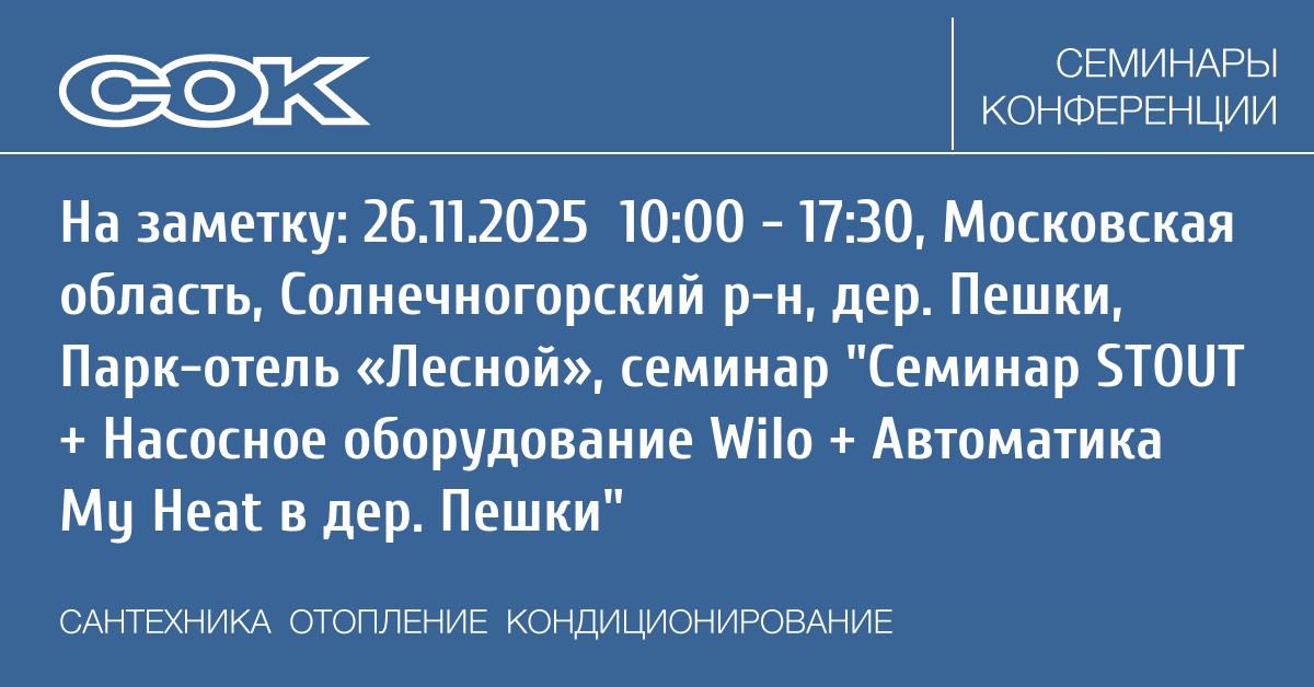 - 18.11.2025 10:00 - 18:00 Seminar Семинар по продукции STOUT в Санкт-Петербурге