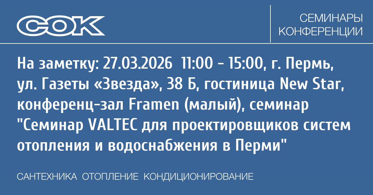 Семинар: Семинар VALTEC для проектировщиков систем отопления и водоснабжения в Перми