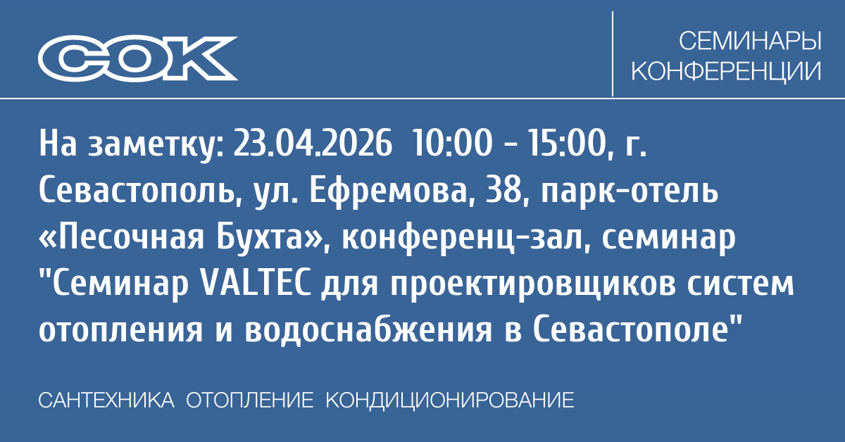 Семинар: Семинар VALTEC для проектировщиков систем отопления и водоснабжения в Севастополе