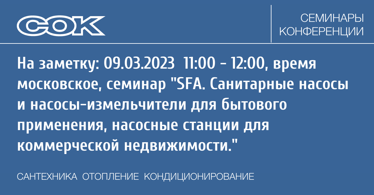 Вебинар: SFA. Санитарные насосы и насосы-измельчители для бытового применения, насосные станции для коммерческой недвижимости.