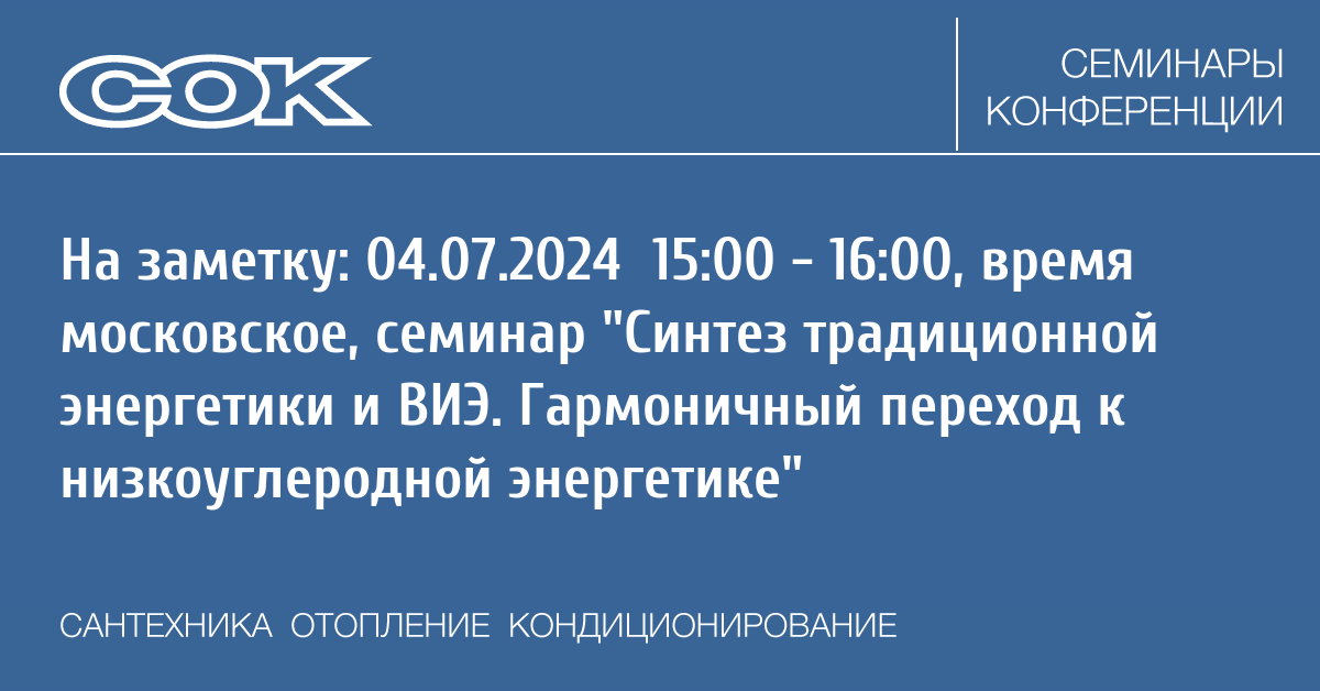 Вебинар: Синтез традиционной энергетики и ВИЭ. Гармоничный переход к низкоуглеродной энергетике