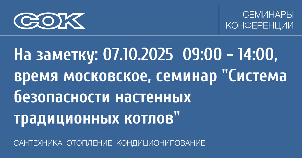 - 07.10.2025 09:00 - 14:00 Webinar Система безопасности настенных традиционных котлов
