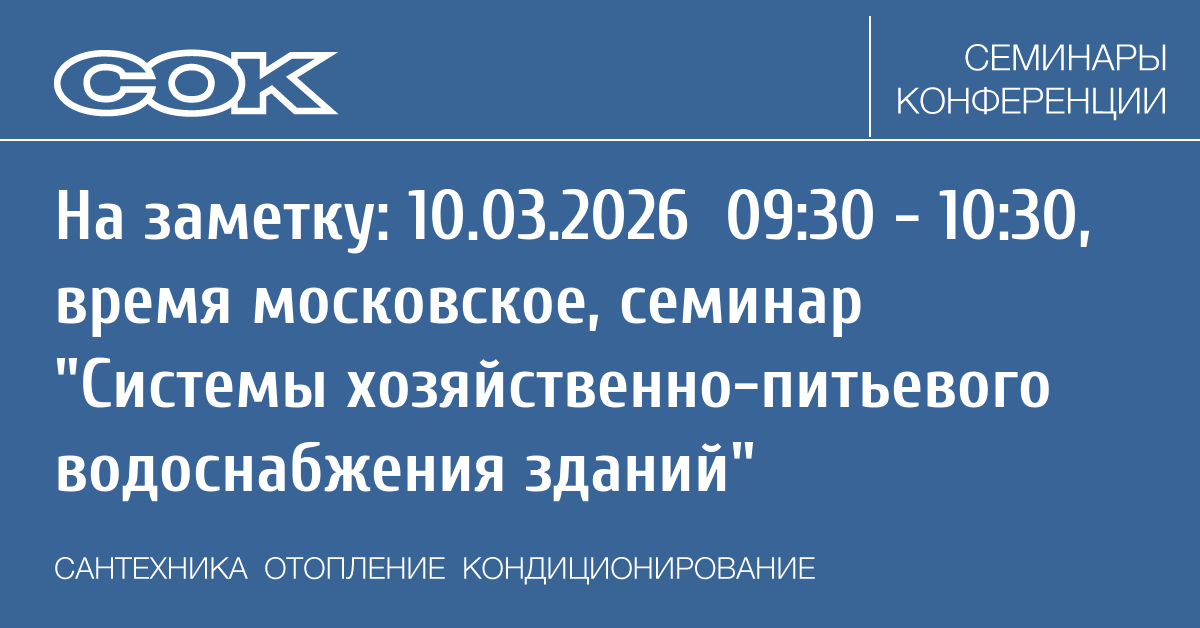 Вебинар: Системы хозяйственно-питьевого водоснабжения зданий