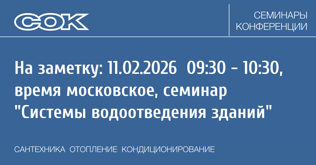 - 11.02.2026 09:30 - 10:30 Вебинар Системы водоотведения зданий