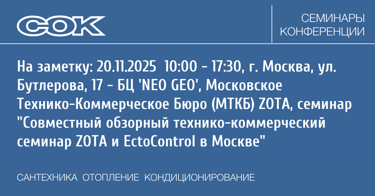 Seminar: Совместный обзорный технико-коммерческий семинар ZOTA и EctoControl в Москве