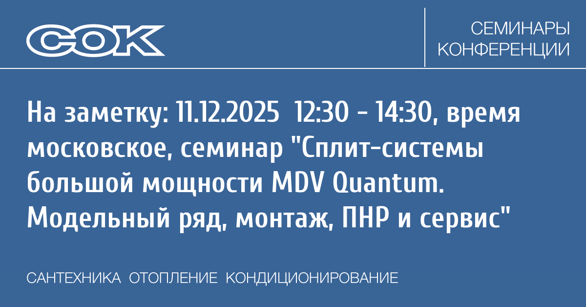 На вебинаре спикер детально разберет новую флагманскую серию сплит-систем MDV Quantum большой мощности. Вы узнаете о ключевых инновациях, которые отличают ее от других линеек: повышенная энергоэффективность, расширенный рабочий диапазон наружных температур и современный дизайн внутренних блоков. Также эксперт рассмотрит технические характеристики, делающие Quantum идеальным решением для коммерческих и полупромышленных объектов.