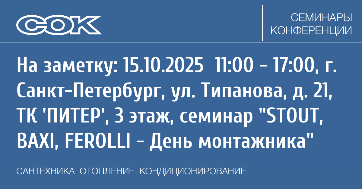 Seminar: STOUT, BAXI, FEROLLI - День монтажника