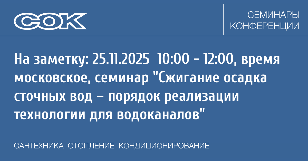 Webinar: Сжигание осадка сточных вод – порядок реализации технологии для водоканалов