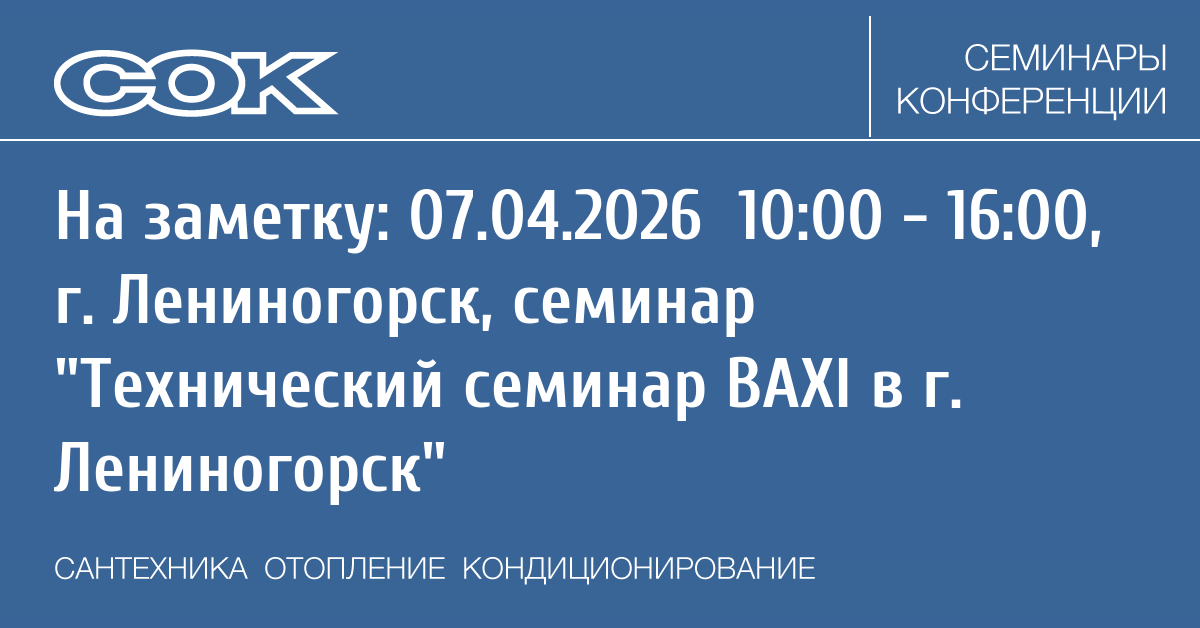 Семинар: Технический семинар BAXI в г. Лениногорск