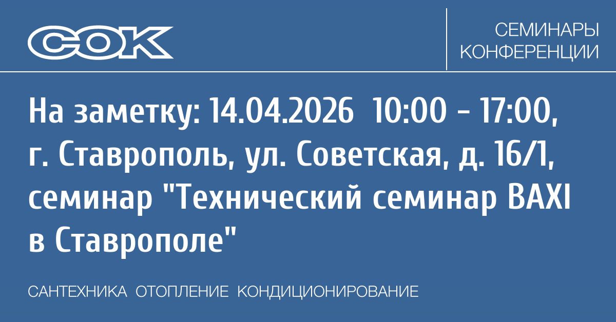 Городской семинар BAXI в Ставрополе для монтажных и сервисных компаний на тему: