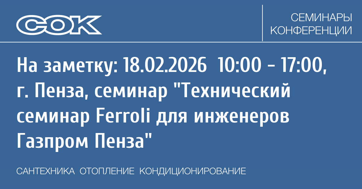 Семинар: Технический семинар Ferroli для инженеров Газпром Пенза