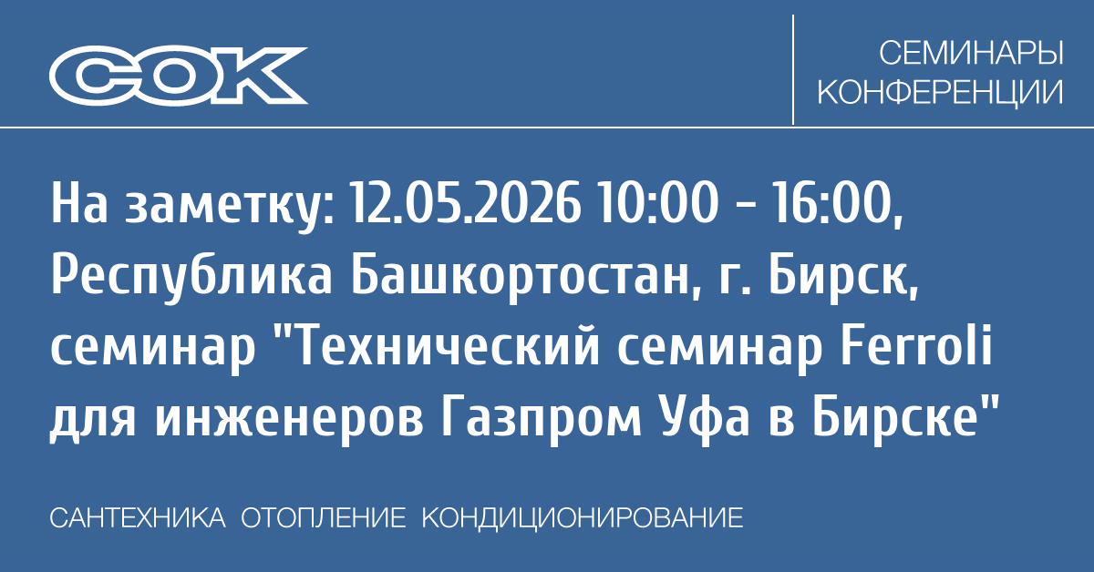 Семинар: Технический семинар Ferroli для инженеров Газпром Уфа в Бирске
