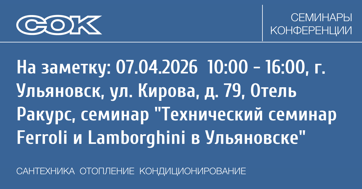 Семинар: Технический семинар Ferroli и Lamborghini в Ульяновске