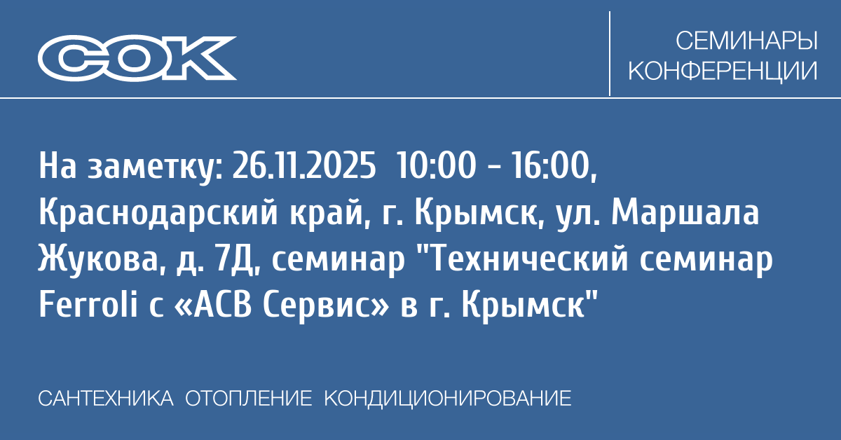 Seminar: Технический семинар Ferroli с «АСВ Сервис» в г. Крымск