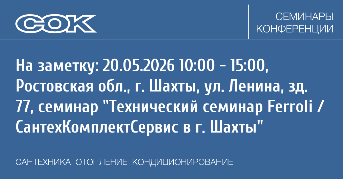 Семинар: Технический семинар Ferroli / СантехКомплектСервис в г. Шахты