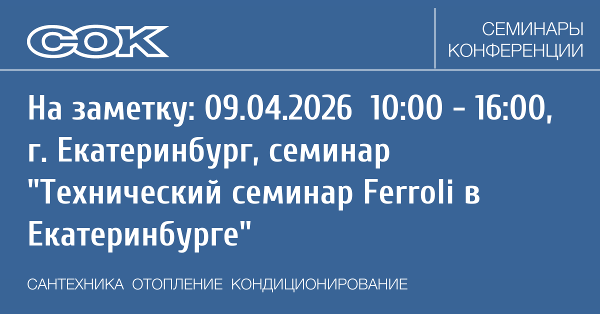 Семинар: Технический семинар Ferroli в Екатеринбурге