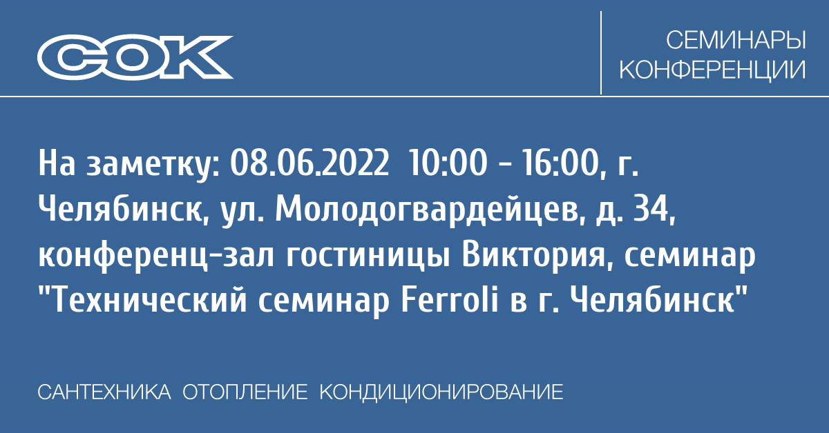 Семинар: Технический семинар Ferroli в г. Челябинск