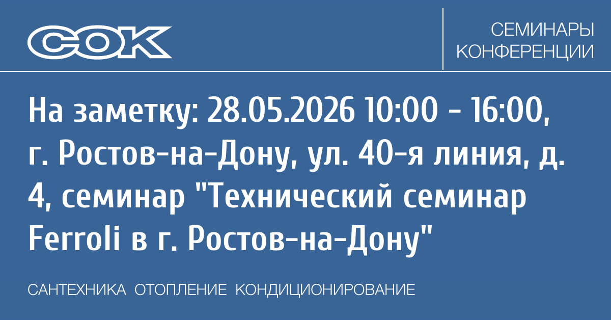 Семинар: Технический семинар Ferroli в г. Ростов-на-Дону