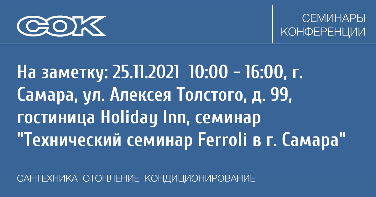Семинар: Технический семинар Ferroli в г. Самара