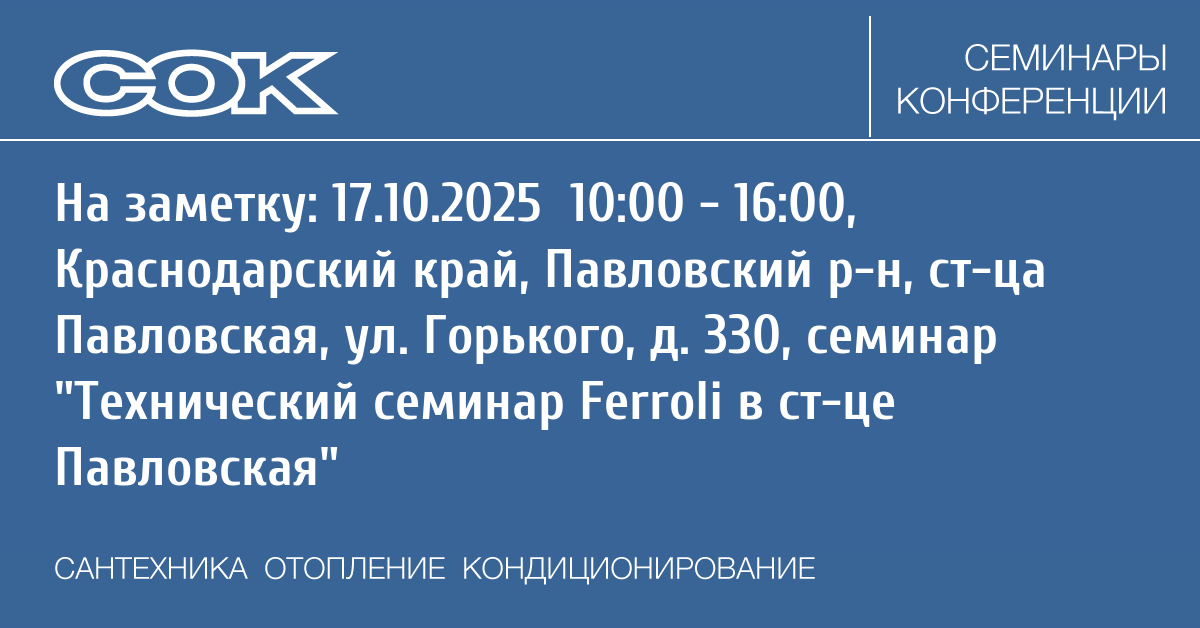 Seminar: Технический семинар Ferroli в ст-це Павловская