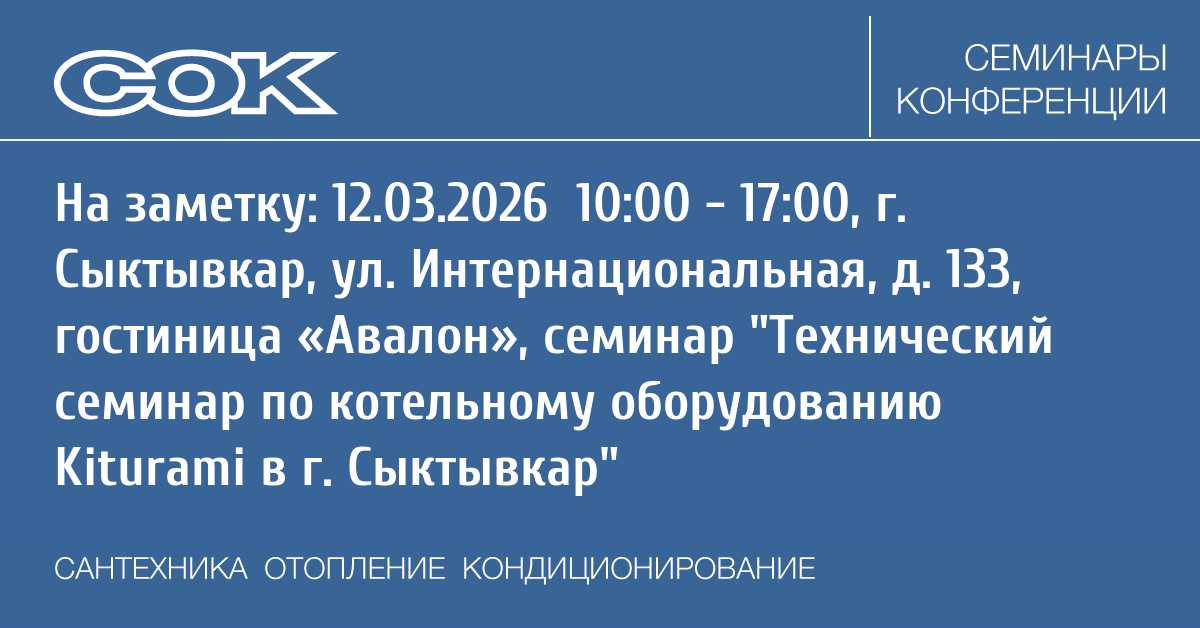 Семинар: Технический семинар по котельному оборудованию Kiturami в г. Сыктывкар