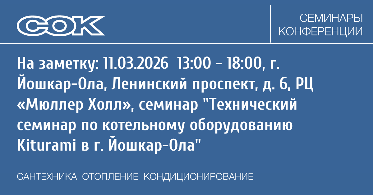 Семинар: Технический семинар по котельному оборудованию Kiturami в г. Йошкар-Ола