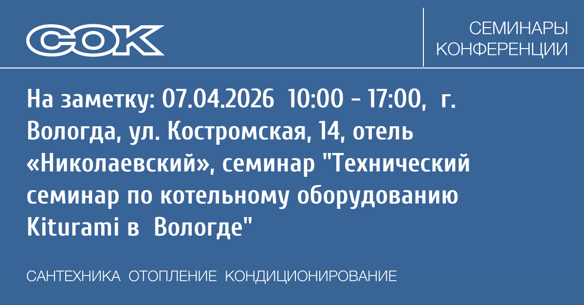 Семинар: Технический семинар по котельному оборудованию Kiturami в Вологде