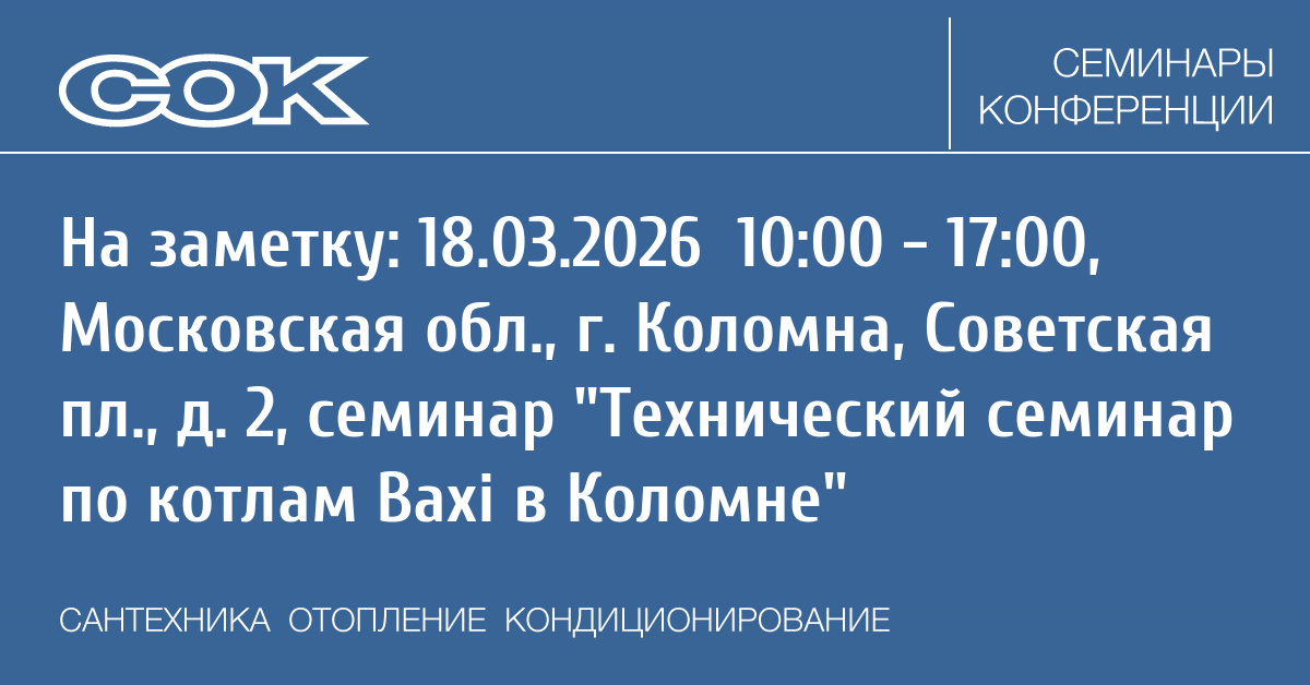Семинар: Технический семинар по котлам Baxi в Коломне