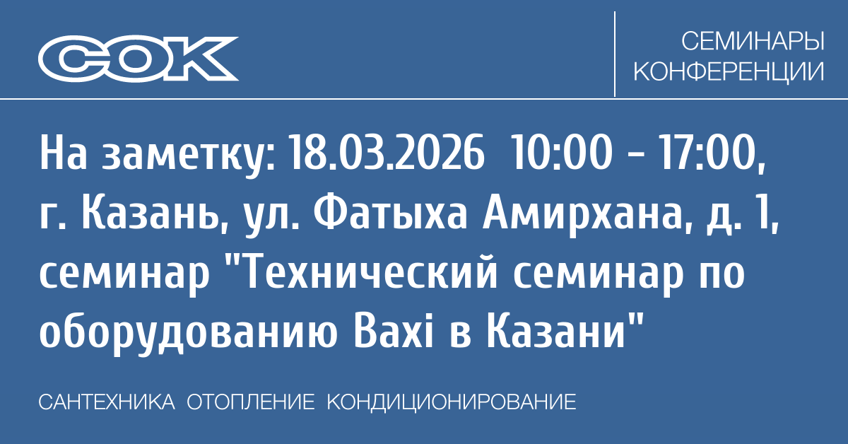Семинар: Технический семинар по оборудованию Baxi в Казани