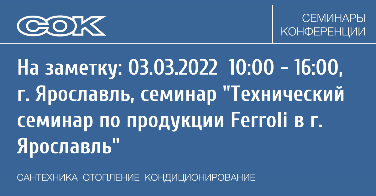 Семинар: Технический семинар по продукции Ferroli в г. Ярославль