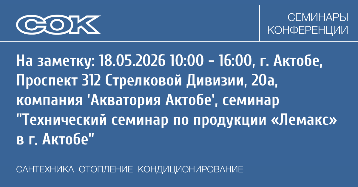 Семинар: Технический семинар по продукции «Лемакс» в г. Актобе