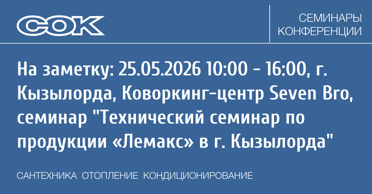 Учебный центр «Лемакс» проводит технический семинар по продукции «Лемакс» в г. Кызылорда.