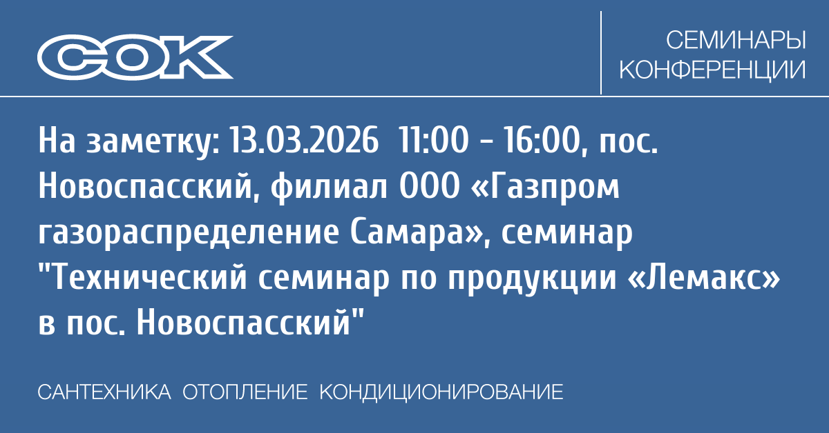 - 04. 11:002026 - 06.03. 16:002026 Семинар Технический семинар по продукции «Лемакс» в Самаре