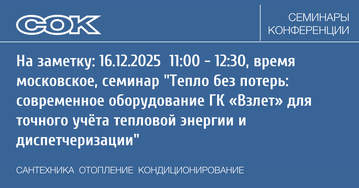 Вебинар: Тепло без потерь: современное оборудование ГК «Взлет» для точного учёта тепловой энергии и диспетчеризации
