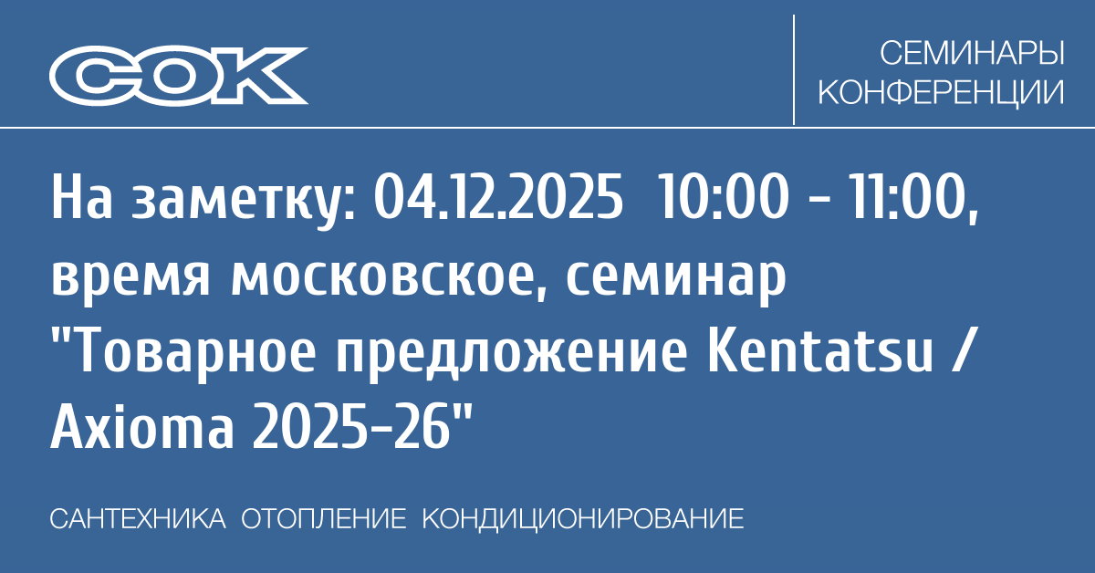 - 04.12.2025 10:00 - 11:00 Webinar Товарное предложение Kentatsu / Axioma 2025-26